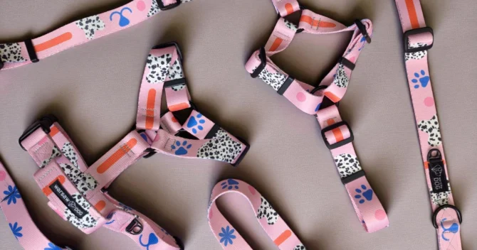 Pastelowa tonacja rozświetla każdy spacer, owijając Was w miękkiej chmurce słodyczy. Idealny dla tych z Was, którzy cenicie sobie ciepłe, bliskościowe relacje ze swoim psiakiem. Kolekcja Pinky Promise jest utrzymana w kolorystyce pastelowego różu, przełamanego niebieskimi akcentami psimi (odcisk łapy, pyszczek) i abstrakcyjnymi kształtami w kontrastujących kolorach.