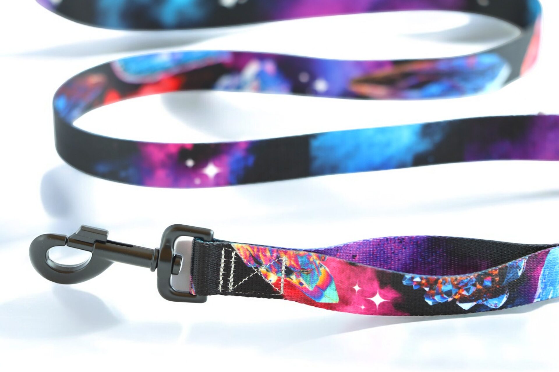 W smyczy miejskiej znajduje się dodatkowy uchwyt – w wersji węższej wszywamy go w połowie smyczy, w wersji szerszej – tuż nad karabińczykiem. Miejsce w którym znajduje się dodatkowy uchwyt jest dostosowane do wysokości psiego użytkownika :) Poniżej rączki znajduje się metalowe półkółko, do którego można przyczepić kupownik. Smycz wykonujemy z taśmy z unikalnym nadrukiem. Elementy metalowe są w standardzie czarne, na zamówienie wszywamy inne kolory okuć – w tym celu wystarczy zaznaczyć okienko opcji premium. Wszystkie smycze dla psów każdorazowo szyjemy na zamówienie w małym studiu w Warszawie.