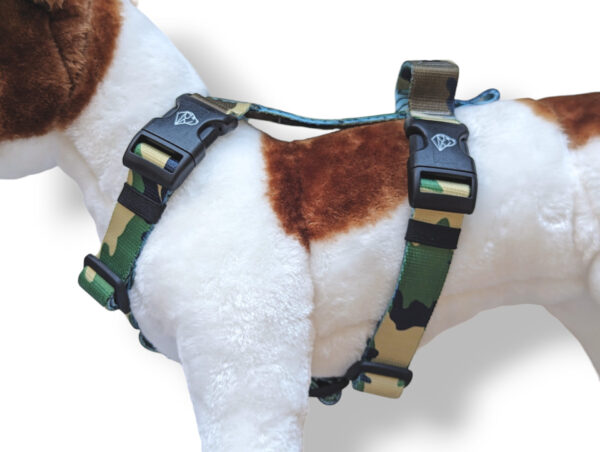 - po dwie klamry w każdej obręczy, co ułatwia zakładanie i zdejmowanie szelek zwłaszcza u psów, które nie lubią zabiegów koło głowy