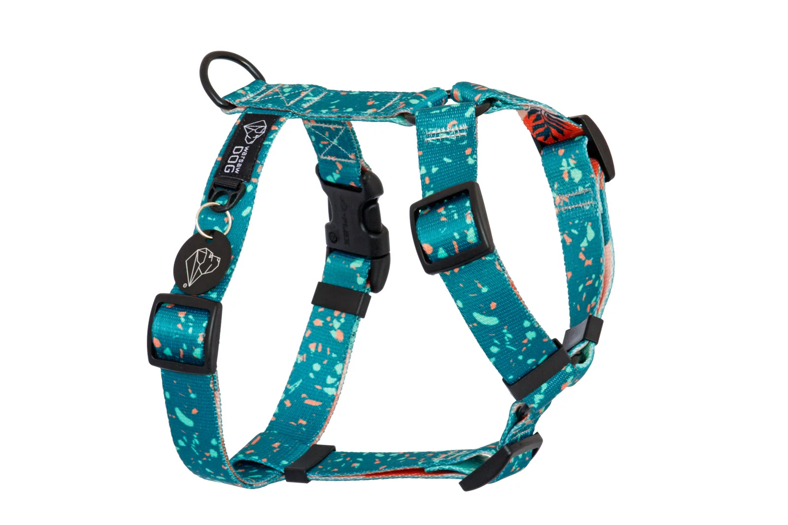 Szelki guardy dla psa składają się z dwóch obręczy i dwóch pasków (górny i dolny). Do ich stworzenia używamy taśm z autorskim nadrukiem. Szelki typu guard są szybkoschnące, co sprawia że są to idealne szelki dla psa na lato jak i na zimę. Posiadają regulatory w obu obręczach i dolnym pasie, dzięki czemu świetnie dostosowują się do każdego psa, niezależnie od sylwetki. Ze względu na intuicyjną regulację, polecane są dla szczeniąt. Polecamy je również dla dużych psiaków, które mają tendencję do ciągnięcia na smyczy – ten rodzaj szelek rozkłada szarpnięcia wzdłuż kręgosłupa. Po powiększeniu regulacji można je zakładać na ciepły kubraczek czy kurtkę. Wszystkie elementy metalowe są w standardzie czarne, na zamówienie wszywamy inne kolory okuć – w tym celu wystarczy zaznaczyć okienko opcji premium. Jeśli pies znajduje się na pograniczu rozmiarów lub jeszcze rośnie, możemy uszyć szelki pomiędzy rozmiarami. W takiej sytuacji prosimy o zaznaczenie tej opcji i opis psa według instrukcji. Najważniejsze, żeby psu było wygodnie! Szelki każdorazowo szyjemy na zamówienie w małej pracowni w Warszawie.
